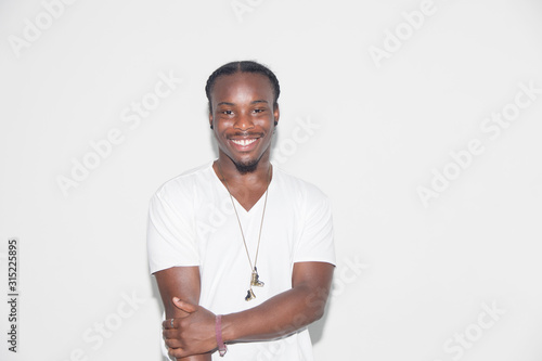 portrait, smile, confident, teenage, boy, african, alone, background, black, colours, copy space, culture, cut-out, front view, generation, goatee, hair, happy, individuality, lifestyle, 1, part of, people, person, posing, series, shot, racked, studio, toothy, waist up, white, youthSHARE