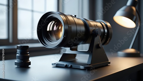 iPhone Cases: Telescope equipment on lab desk with low-profile mount eyepiece studio lighting