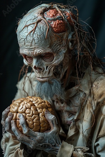 Metal Prints: A fitness guru zombie trying to promote a brain-food diet, with literal brain foods
