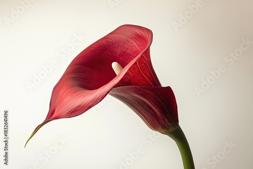 curved, flower, stem, trumpet-shaped, sex, calla lily, setting, red, foreground, clothing, background, vibrant, landscapeSHARE