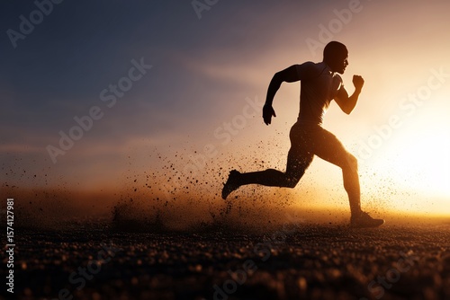 runner, up, dirt, sprinting, into, sunset, athlete, powerful, stride, on, dusty, track, concept, effort, determination, sport