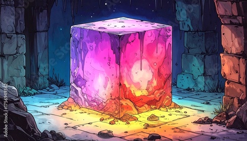 colours, ink, drawing, illustration, gelatinous, cube, dungeon, monster, creature, fantasy, board game, game, rpg, video gameSHARE