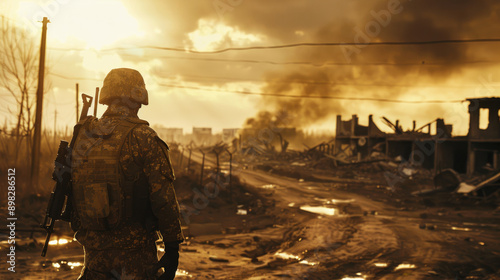 男, 男性, 兵士, 戦争, 戦地, 戦い, 軍隊, 対立, 後ろ姿, 佇む男性, Man, male, soldier, war, battlefield, battle, army, confrontation, back, standing man
