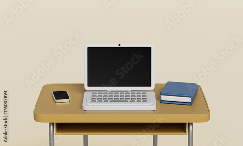 책상, 노트북, 스마트폰, 책 목업 Study Desk with Laptop, Smartphone, and Book Mock up