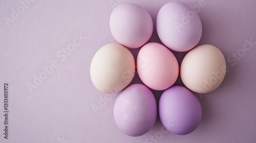 A cluster of eggs positioned together on a purple-white background with an egg centrally located