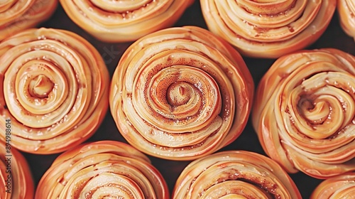 A stack of rolled-up doughnuts on top of a pile of other doughnuts next to each other
