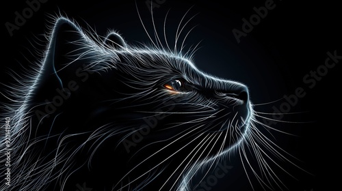 Close-up of a cat's face on a black background, illuminated by light shining through its eyes