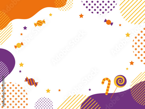 halloween, october, fall, candy, candy, pop, curve, banner, campaign, event, sale, orange, purple, wave, geometry, background, star, nuance, sweet, frame, decoration, abstract, dot, stripes, line, name, message, card, copy space, vector