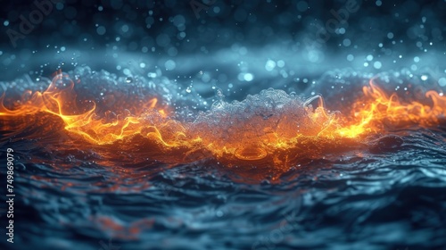 a close up of a body of water with a lot of fire coming out of the water and a lot of water splashing on top of the water and bottom of the water.