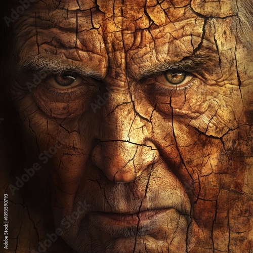 A close up of an old man's face with cracked skin