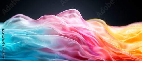 A close-up of a multicolored wave against a black backdrop, featuring waves in shades of red, yellow, blue, pink, green, orange, and pink, overla