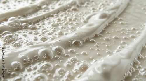 A close-up view of a white surface teeming with water bubbles and numerous drops