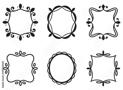 A collection of elegant decorative frames in various shapes and designs, drawn in black-and-white style, perfect for adding a vintage or artistic touch to digital or print projects.