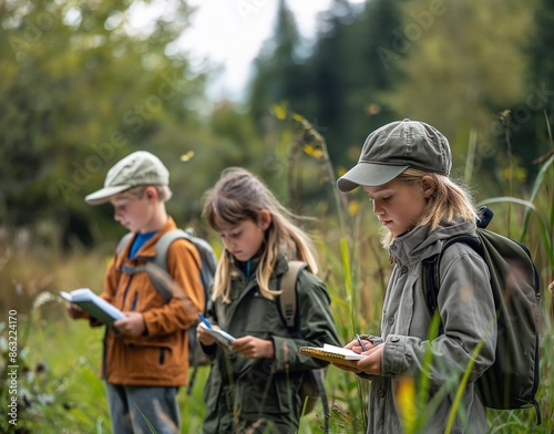 children, field trip, nature, learning, education, outdoors, student, group, notebook, pen, school, writing, cognition, information, explore, environment, observe, discover, research, science, class, classmate, teacher, activity, trip, meadow, grass, tree, plant, sunshine, fresh air, healthy, happy, curious, engaged, educational, collaboration, springtime