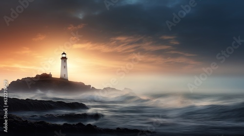 sea, lighthouse, light, ocean, water, sky, landscape, sunset, nature, dusk, coast, night, evening, beacon, tower, ai, beach, sunrise, travel, coastline, island, sun, cloud, cloud, bay, summer, wave