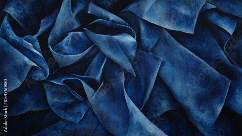 A painting of a blue cloth with consistent dark blue fabric texture..Or:..A painting showcasing a blue fabric with recurring dark blue fabric texture