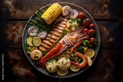 food, plate, platter, table, meal, vegetable, dish, dinner, still life, cooking, seafood, fruit, wood, lunch, produce, clam, no one, tableware, ingredient, crockery, sitting, receipe, filled, cookery, wooden, rustic, bowl, pork meat, delicious, meat, fish, epicure, salad, fresh, red, closeup, tomatoes, chicken, cheese, fried, grilled, eatery, cooked, healthy