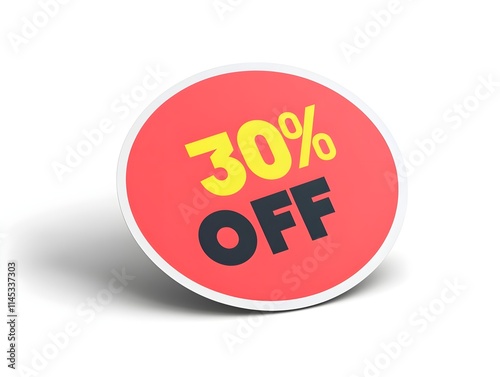 A red circular sticker with the text "30% OFF" in bold yellow font on a plain white background