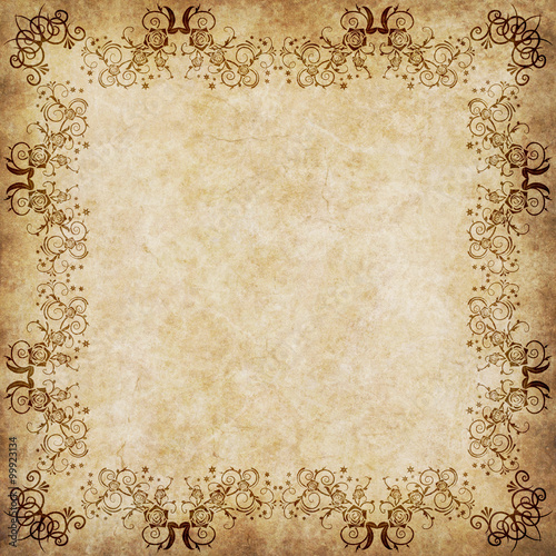 abstract, aged, ageing, ancient, antique, background, beige, blank, border, brown, burned, burnt, canvas, colours, decorative, dirt, dried, ecru, floral, flower, frame, grunge, grimy, illustration, manuscript, material, old, page, paint, paper, parchment, pattern, plant, retro, stained, texture, torn, vintage, worn
