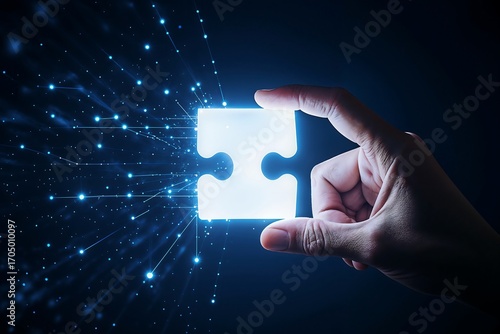 puzzle, piece, solution, connection, digital, technology, network, innovation, abstract, concept, futuristic, hand, holding, glowing, light, bright, datum, cyberspace, communication, link, bright light, problem solving, success, abstract background, connectivity