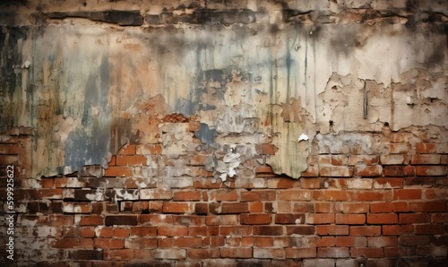 an old brick wall with peeling paint and peeling paint on it. generative ai