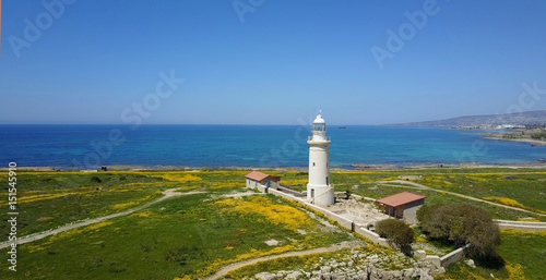 Ancient lighthouse near Mediterranean Sea . Summer landscape. Cyprus.City resort.
