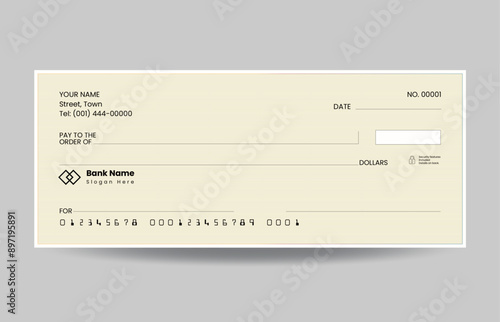 Blank check, bank cheque design, vector format