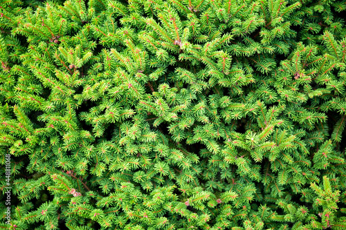 Branches of a beautiful green spruce or pine close-up, beautiful nature background