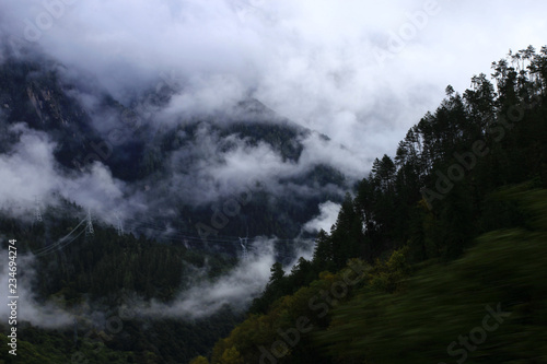 mountain, landscape, sky, cloud, cloud, nature, mountain, fog, forest, weather, hill, mist, green, summer, peak, view, tree, blue, cloudy, tree, scenery, snow, beautiful, travel, sunrise, glacier