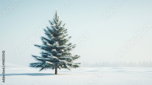 christmas background with copy space, christmas tree on snow,snow covered pine tree