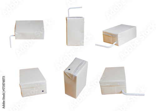 beverage, blank, bottle, box, brown, cardboard, cardbox, clean, crease, crumple, design, drink, food, grooved, isolated, juice, milk, object, pack, package, cardboard box, product, pucker, puckering, template, white, straw