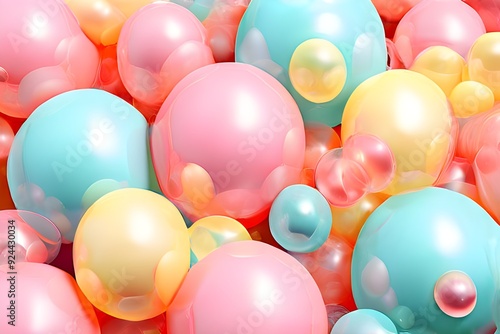 Colorful balloons piled together, creating a vibrant and festive atmosphere, perfect for celebrations and events