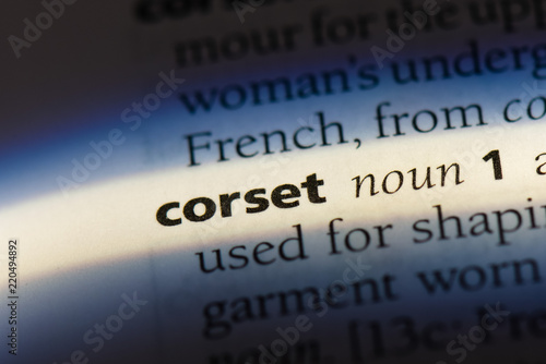 book, closeup, concept, corset, definition, dictionary, english, idea, info, isolated, macro, page, paper, printed, text, word, writing