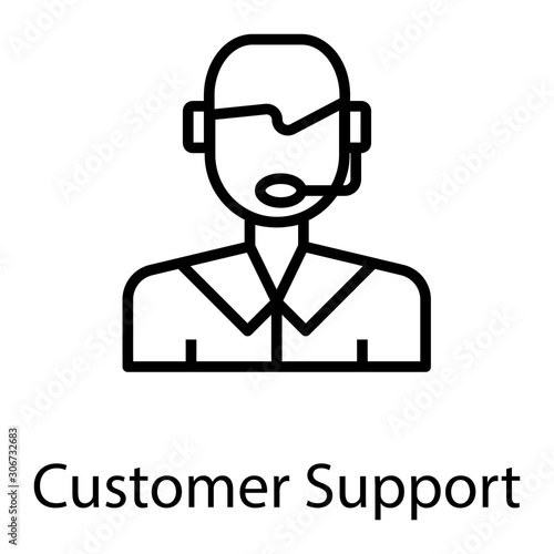 client, support, representative, service, management, telemarketing, man, earphones, avatar, icon, vector, line