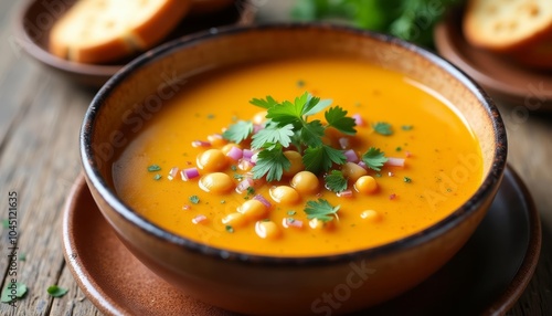 dinner, bowl, wooden, eatery, dining, meal, culinary, food, kitchen, orange, homemade, garnish, soup, herb, table, healthy, rustic, delicious, lunch