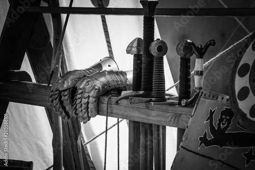 clove, mediaeval, steel, polished, black-and-white, handcraft, handcraft, exhibition, employed, knight, festival, renaissance, armoring, age, shield, sword, battle, warrior, metal, iron, middle, ancient, history, old, vintage, protection, military, weapon, background, hand, mail, helmet