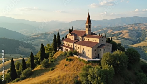 vista, hill, landscape, sky, tranquil, picturesque, countryside, building, mountain, cloud, vale, tree, serene, church, nature, history, scenic, architecture, forest