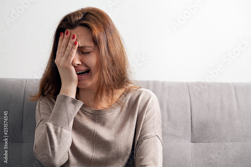 woman, young, cephalalgia, portrait, beautiful, beauty, sad, white, person, isolated, people, business, face, pain, stress, phone, hair, businesswoman, 1, lady, emotion, head, hand, depression, cute, emotional, frustration, conflict, psychology, adult, female, space, copy, consolidated, sofa, inside, room, indoor, day, mood, bad, girl