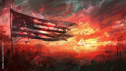 Flag waving, American society, chromatic fantasy illustrations, contemporary conceptual art, 8k