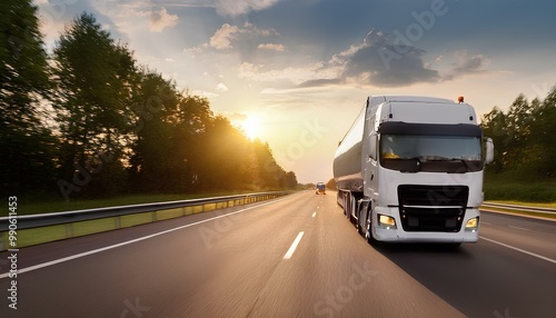Fuel truck on a highway, transporting fuel with a focus on safety