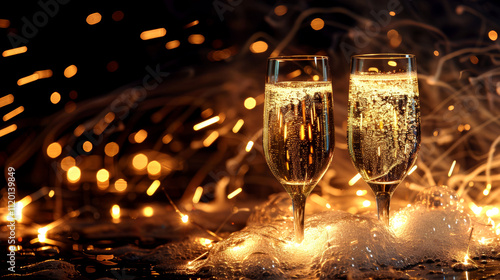 Glasses with champagne in the golden light of Benga