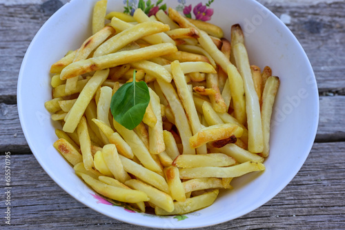 Home made organic Fresh fried French fries on wooden background
