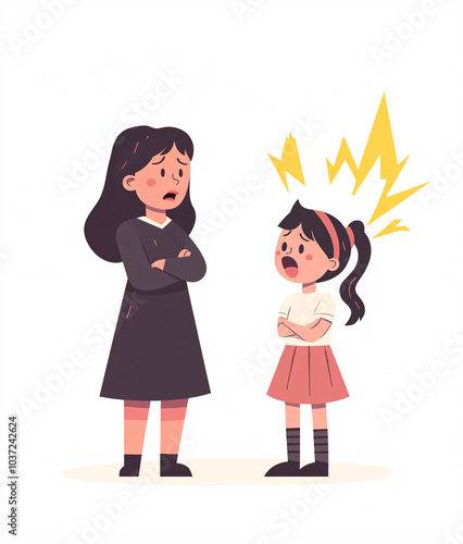 mother, daughter, conflict, argument, family, parenting, anger, frustration, emotional, human relationships, illustration, tension, disagreement, cartoon, emotion, children, discipline, communication, expressive, behaviour, education, motherhood, quarrel, childhood, children