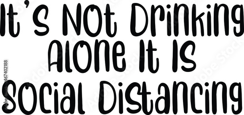 It's Not Drinking Alone It Is Social Distancing Text Lettering Typography idiom for t-shirts prints, motivational quotes.
