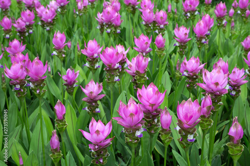 Krachiew flowers (Curcuma sessilis) are blooming in the planting field.
