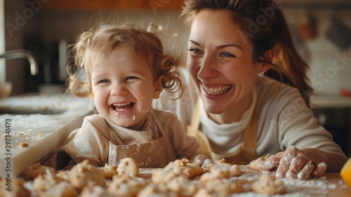 laugh, kitchen, cover, flour, family, love, happiness, joy, laughter, cook, children, build, care, quaint, children, mother, comfort, eltern, dirty, smile, constructed, mother, childhood, dough, playful, silly, carefree, messy, apron