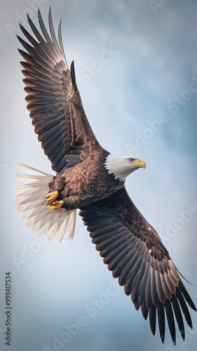 eagle, bald eagle, flying, bird of prey, majestic, wing, flight, wildlife, nature, sky, blue skies, freedom, bird, bird of prey, powerful, feather, aerial, soaring, beak, talon, symbol, patriotism, wild, outdoors, avian, predator, high altitude, strong, skyward, observing, strength