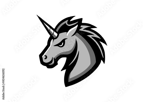 Majestic Unicorn Profile: A stunning artistic rendering of a unicorn, a symbol of purity and magic, against a stark backdrop, exudes an aura of mystique.