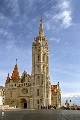 Matthias Church Catholic church in Budapest. The complex of the Buda Castle. The Fisherman's Bastion, one of the famous destinations in Hungary. Budapest. European travel.
