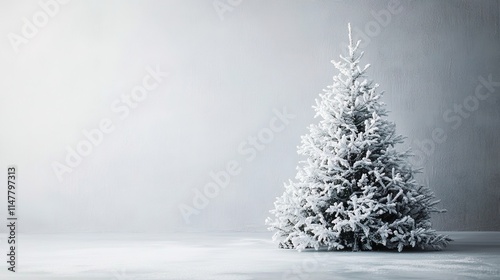 christmas, tree, artificial, minimalist, grey, background, product, photograph, decoration, ball, ornament, white, small, room, interior, wooden, floor, shallow, colours, modern, clean, simple, aesthetic, style, scene, setting, holiday, season, festive, atmosphere, still, calm, serene, minimalistic